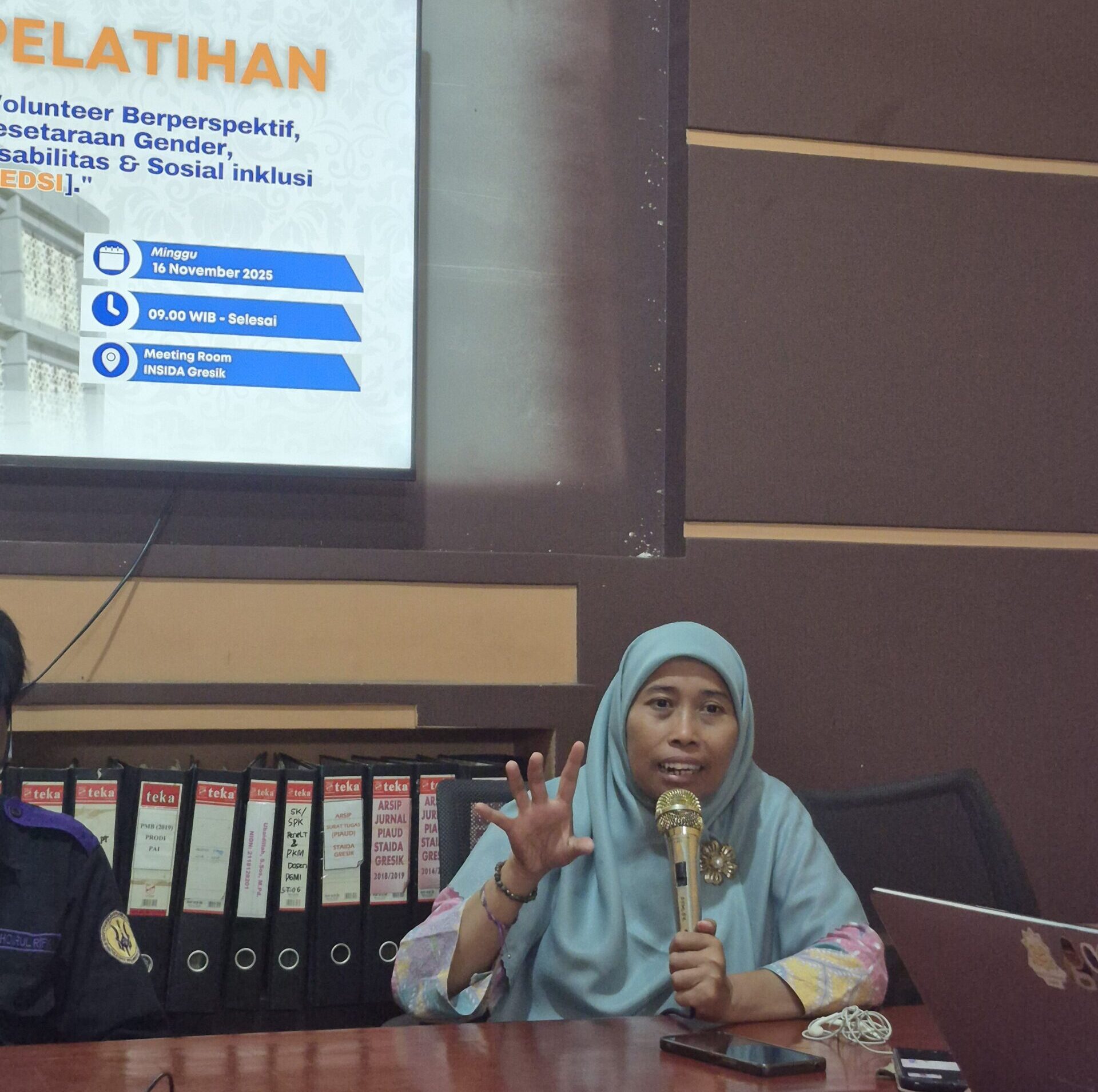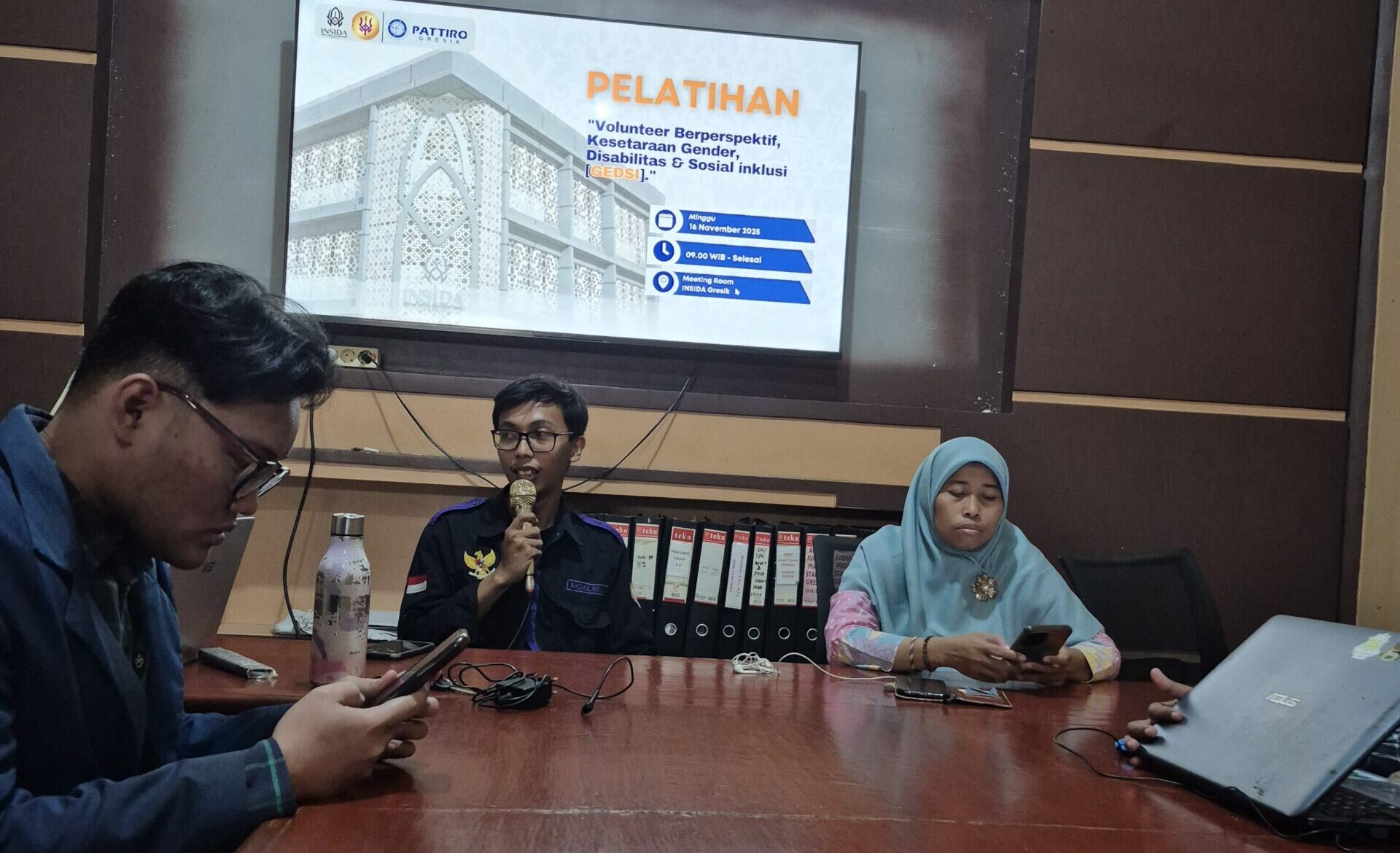 Gresik, 16 November 2025 – Suasana Meeting Room INSIDA pada hari itu sangat bersemangat! Himpunan Mahasiswa Psikologi Islam Insida (Himapsi) baru saja sukses menggelar acara keren bertajuk “Pelatihan Volunteer Berperspektif Kesetaraan Gender, Disabilitas, dan Sosial Inklusi (GEDSI)”.